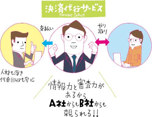 イー・ギャランティは、売掛債権をはじめとした、企業間取引における多様な商取引で発生する債権のリスクヘッジのニーズに対応した商品を開発、提供しています。それを可能するのが蓄積された膨大な情報量と企業信用力を見極める高い審査能力。その強みをフルに活かし、イー・ギャランティは、新たな収益機会の獲得を目指した「決済代行サービス」をリリースしました。